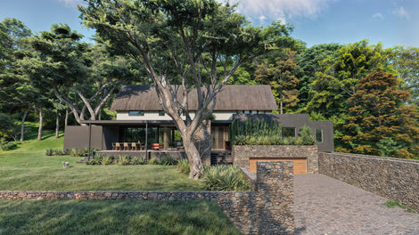 The alterations aim to better integrate the interior living spaces with the garden spaces while transforming the existing thatch roof structure into a luxurious ridge retreat.
